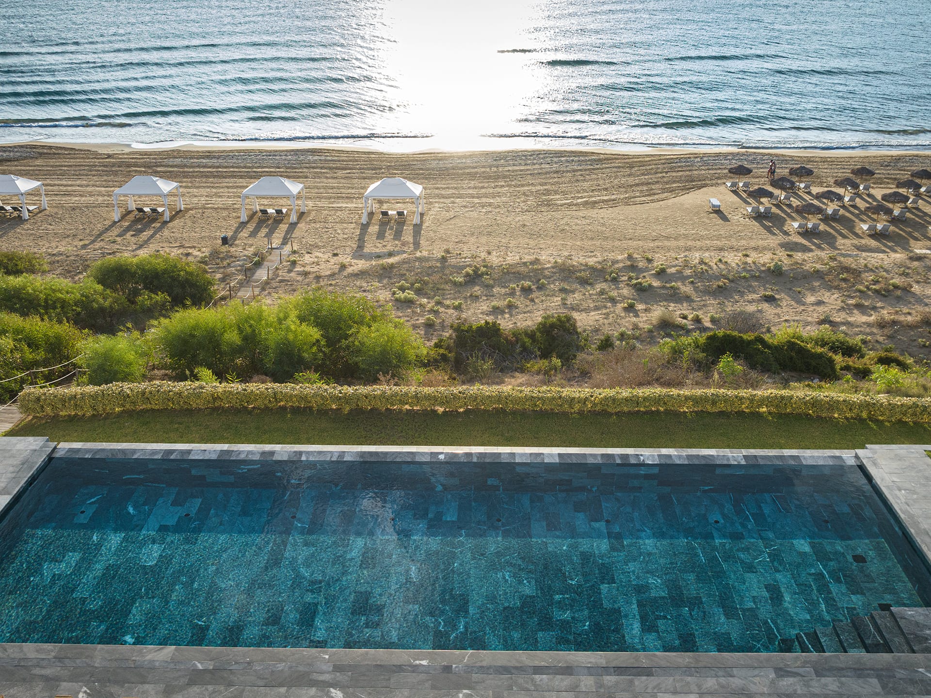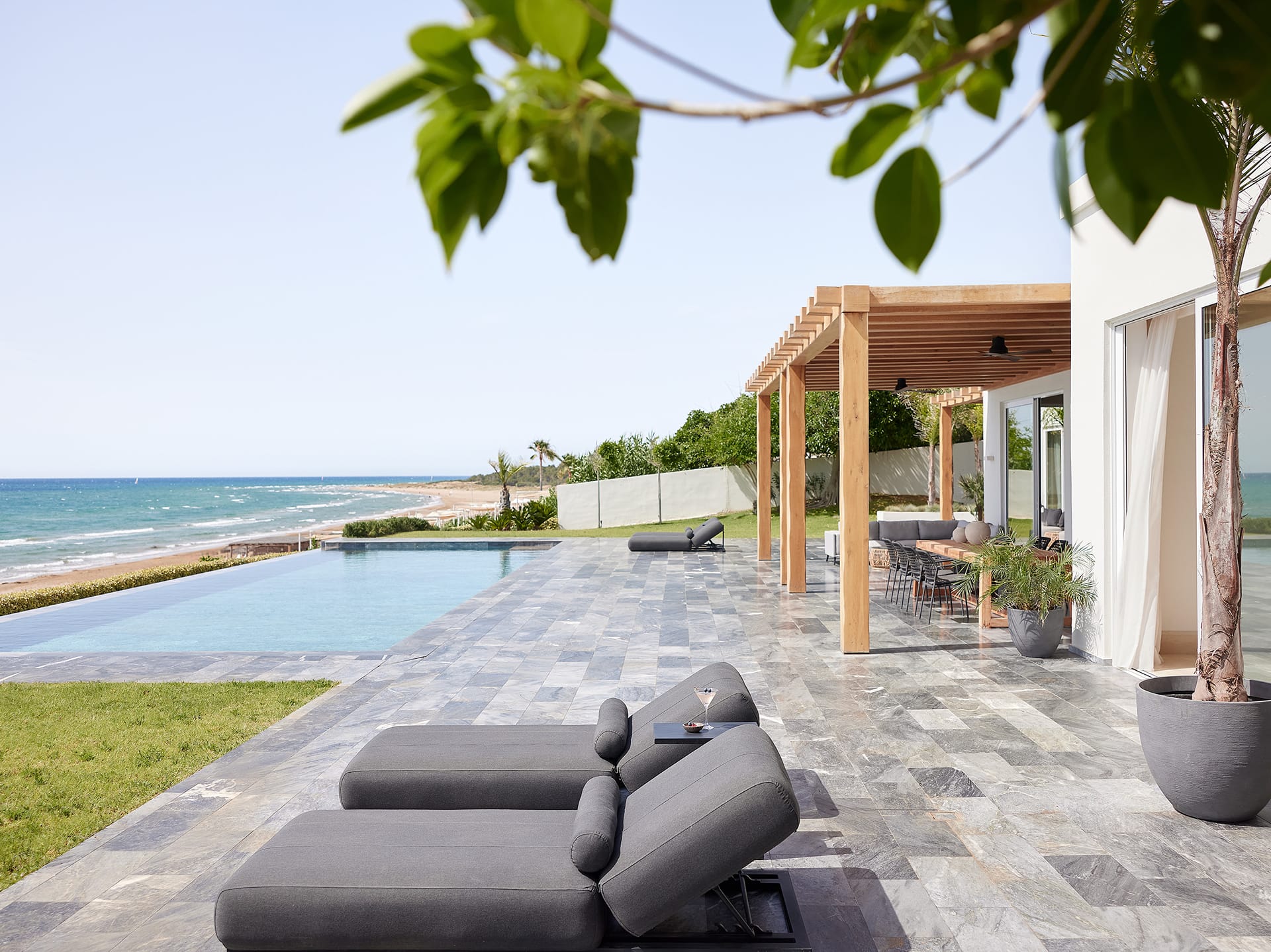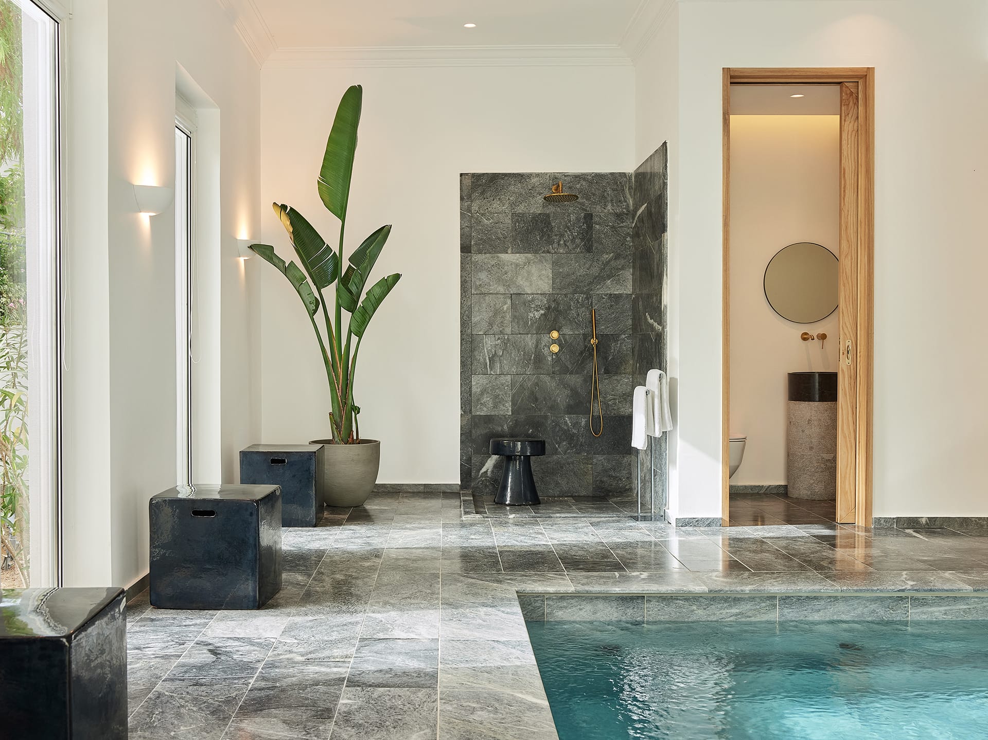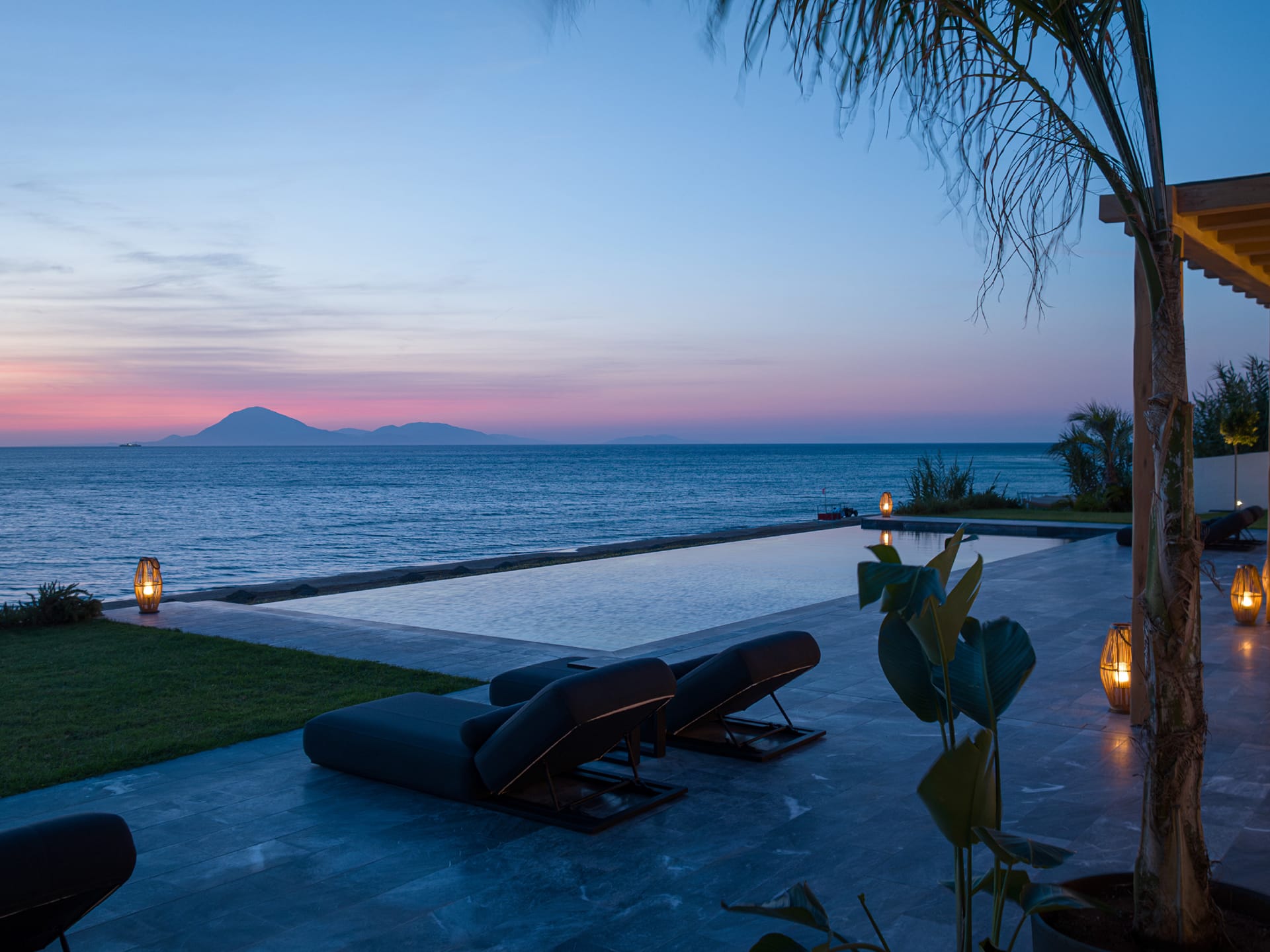 The Royal Pavilion Indoor & Outdoor Pool provides the utmost in luxury at Mandola Rosa, with ideal seclusion, private swimming pools, garden and separate entrances. Tall terrace doors lead out to the private garden and outdoor lounge areas with private steps to the beach.