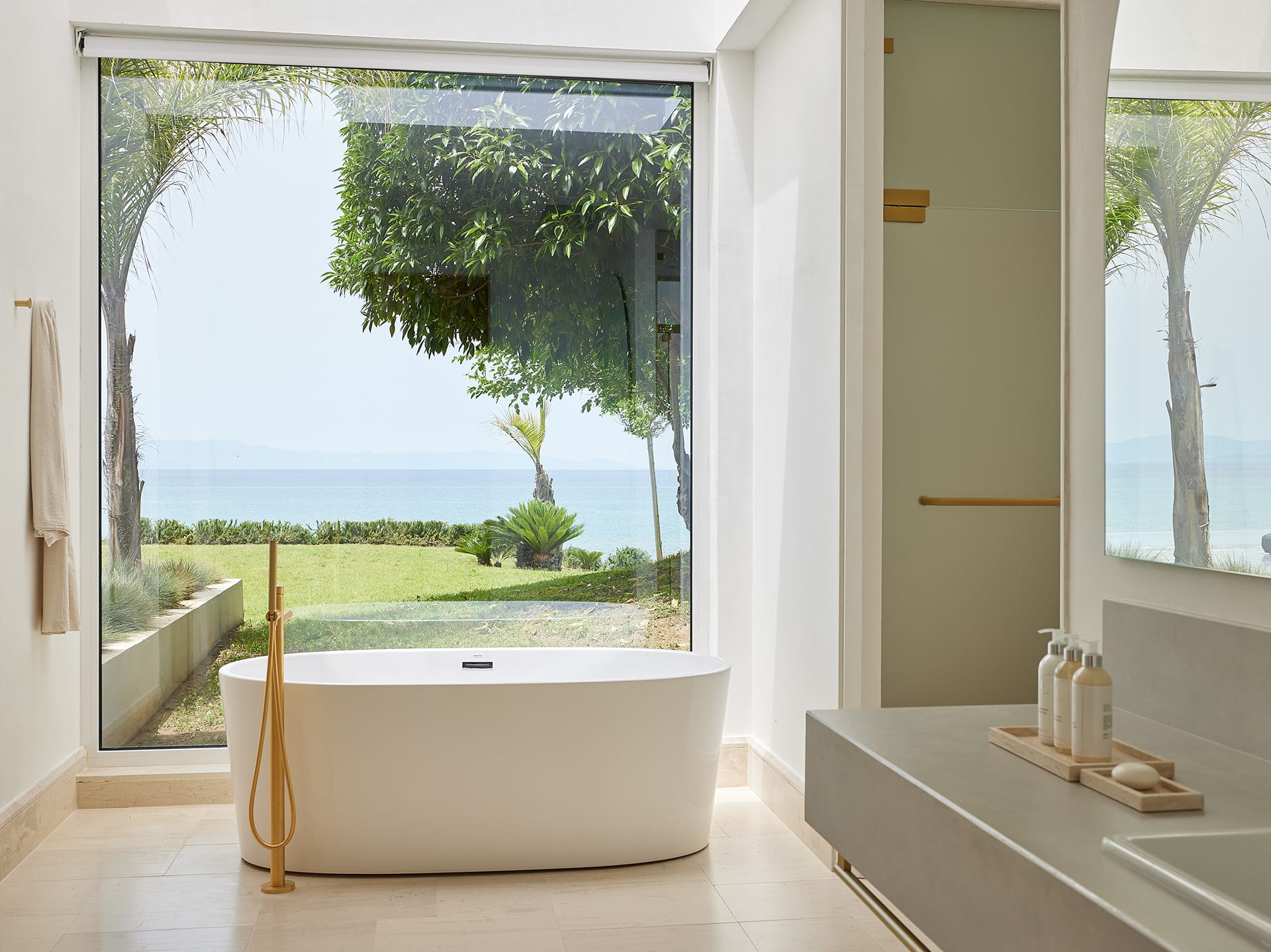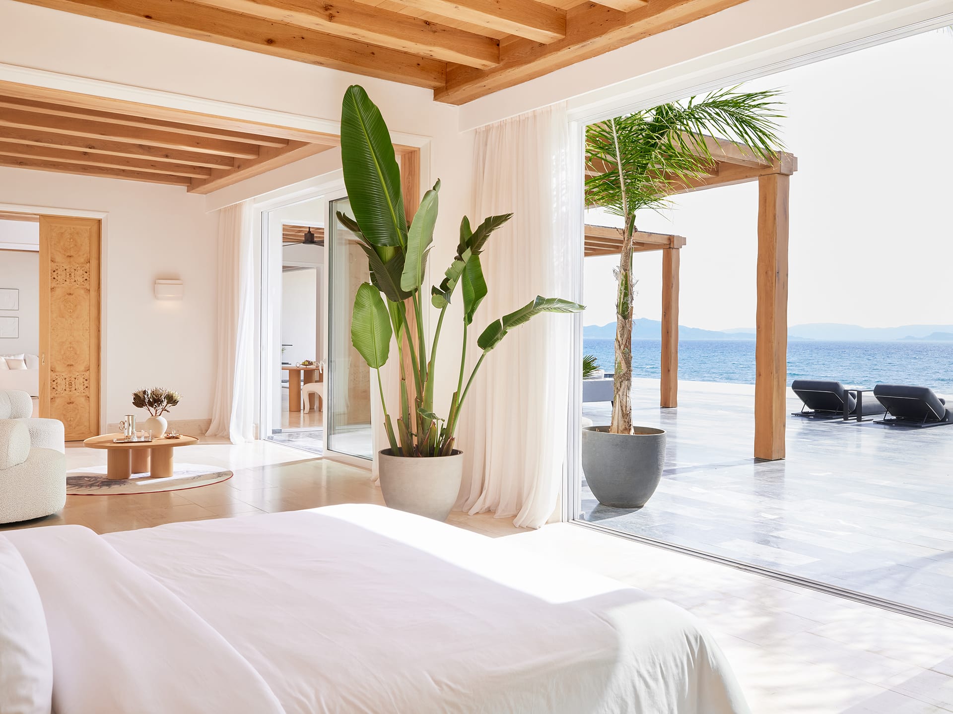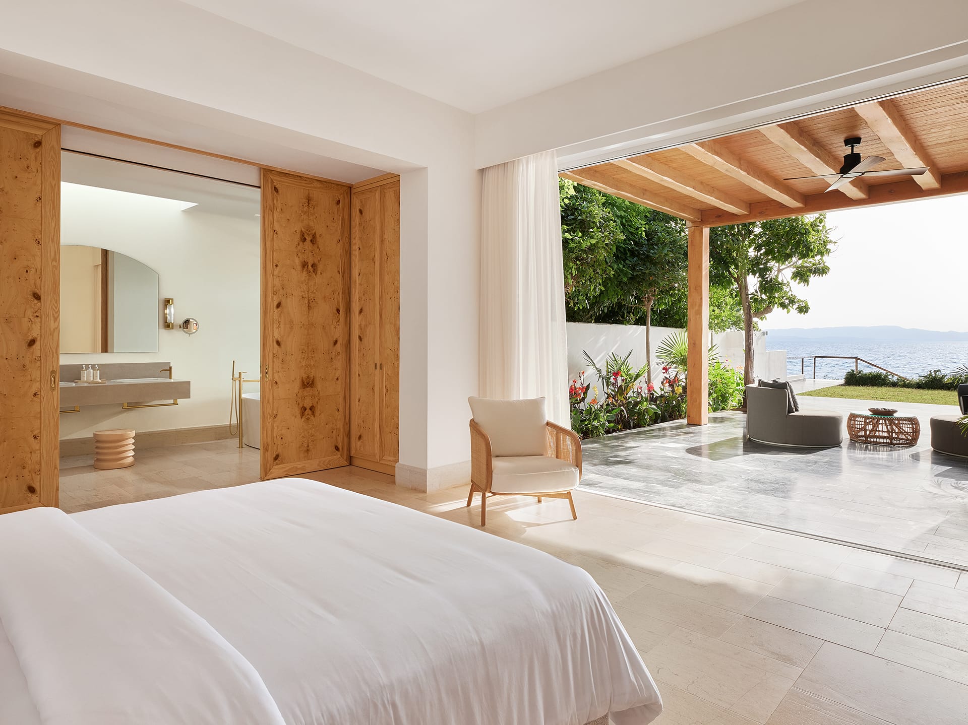 The Royal Pavilion Indoor & Outdoor Pool provides the utmost in luxury at Mandola Rosa, with ideal seclusion, private swimming pools, garden and separate entrances. Tall terrace doors lead out to the private garden and outdoor lounge areas with private steps to the beach.