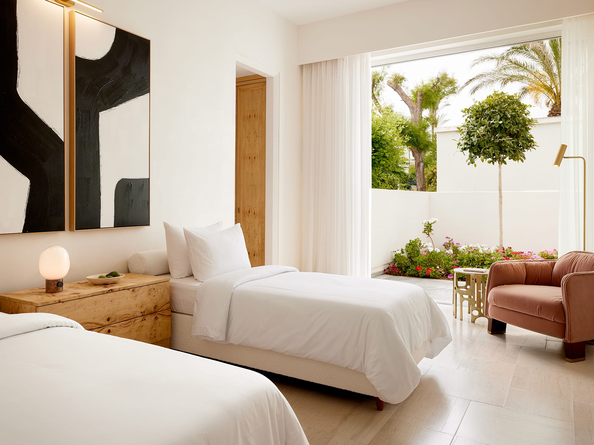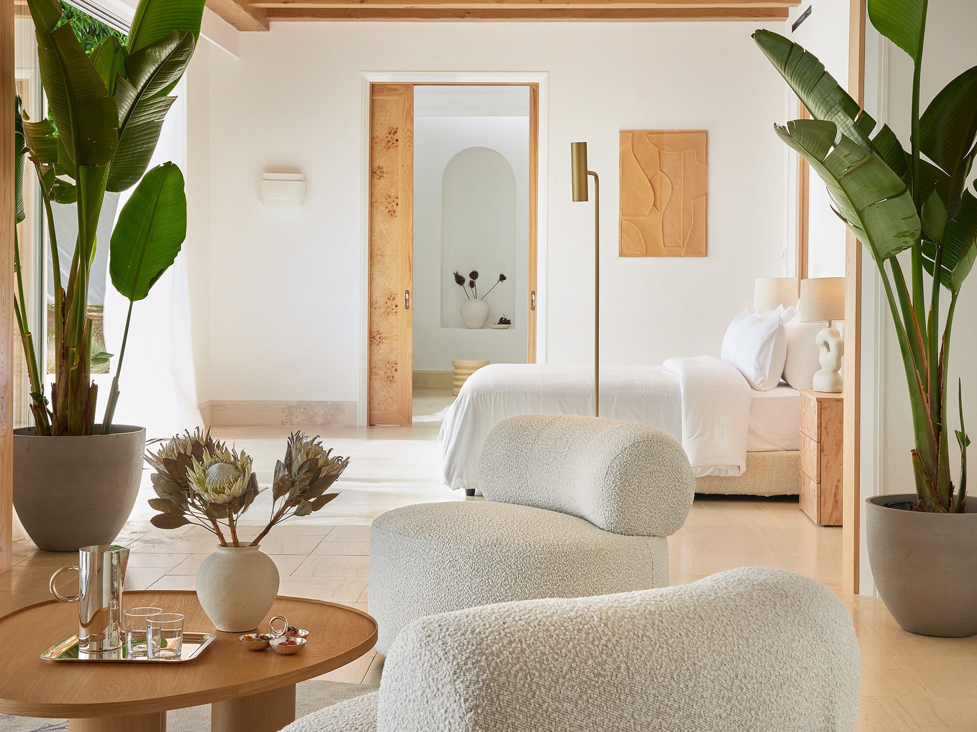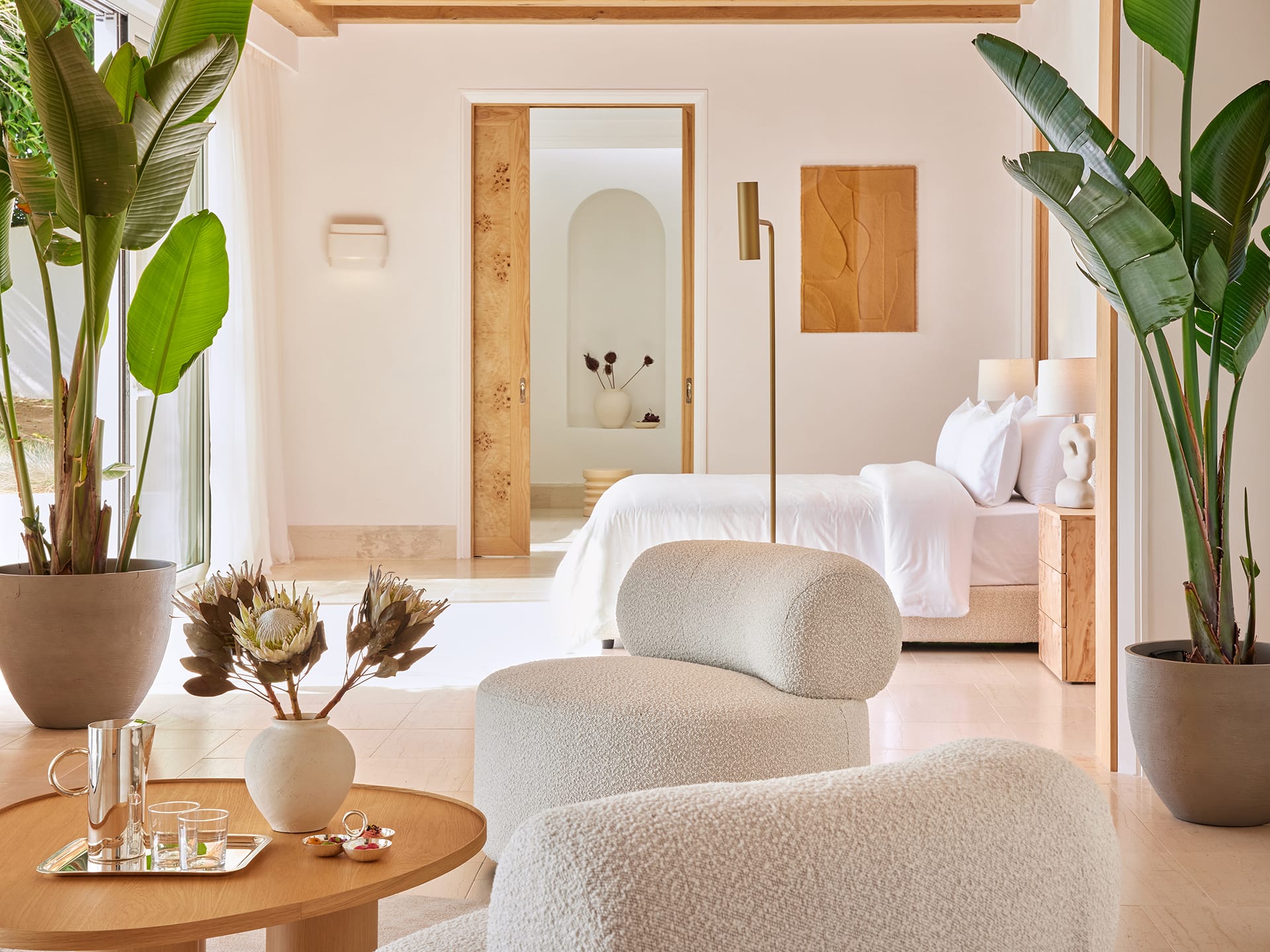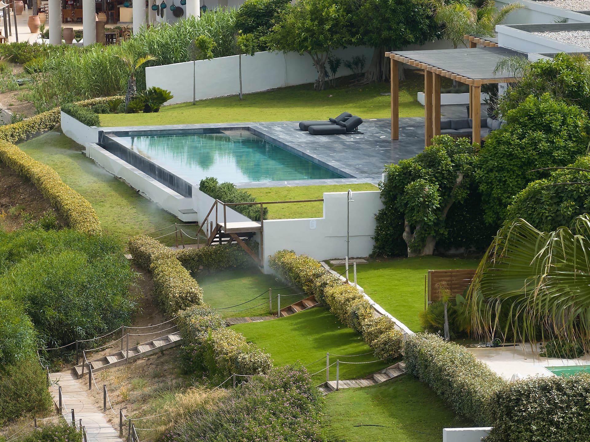The Royal Pavilion Indoor & Outdoor Pool provides the utmost in luxury at Mandola Rosa, with ideal seclusion, private swimming pools, garden and separate entrances. Tall terrace doors lead out to the private garden and outdoor lounge areas with private steps to the beach.