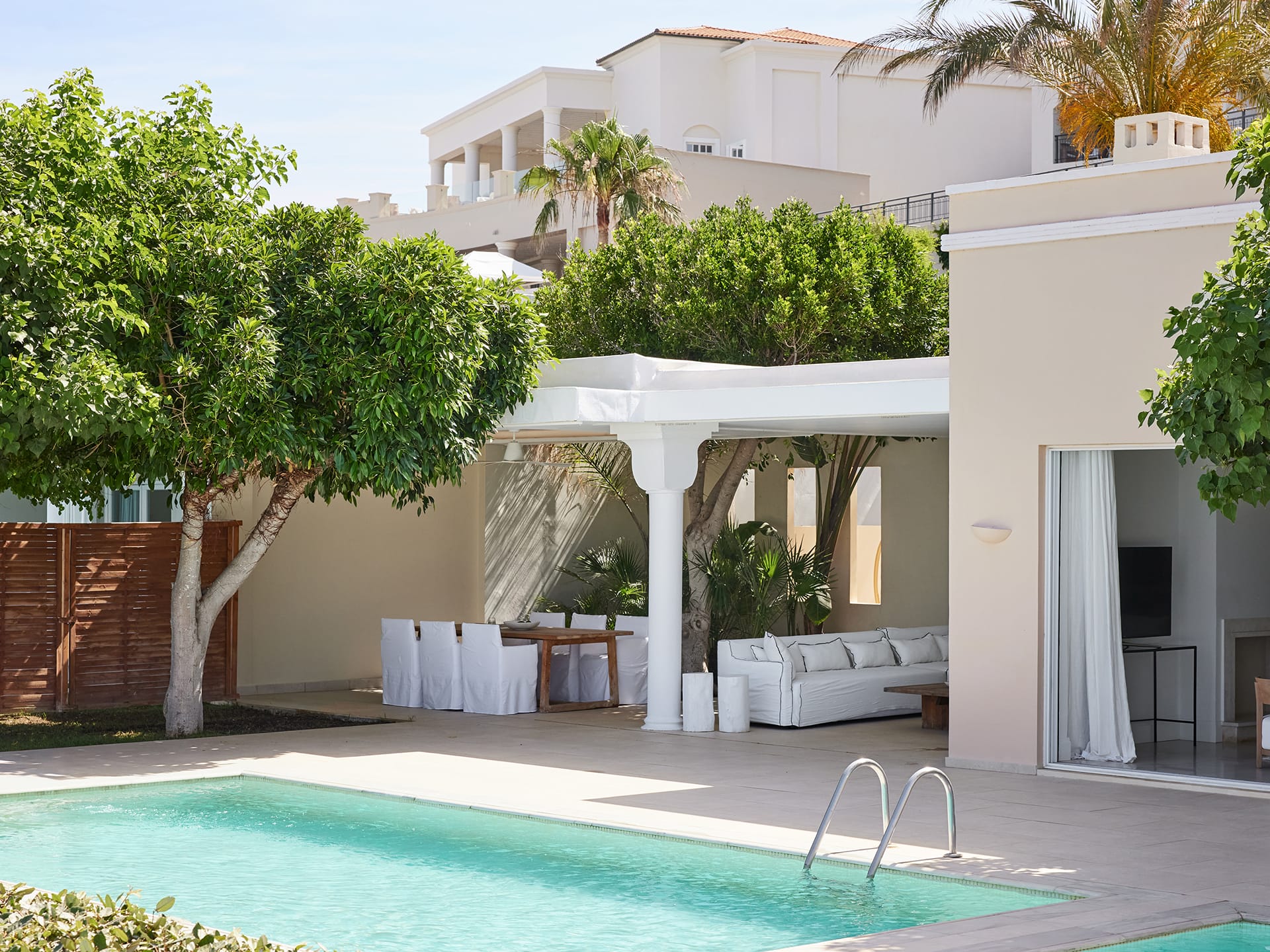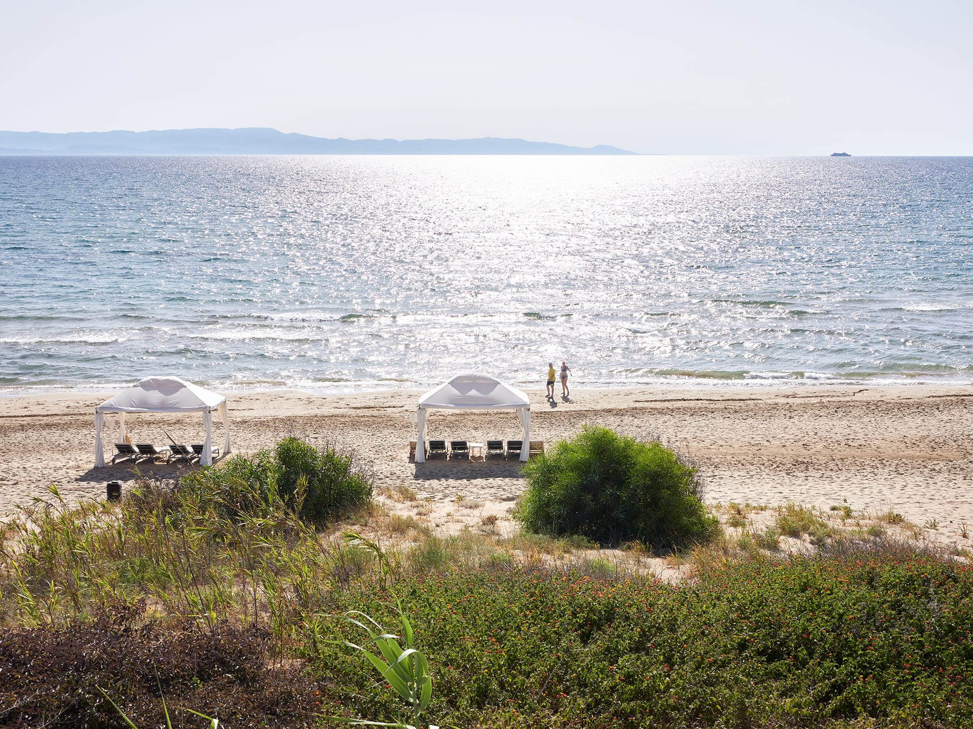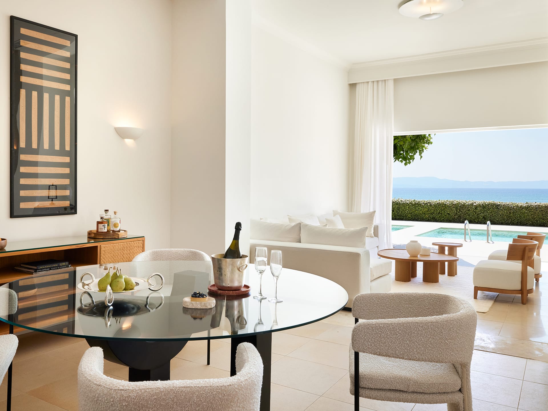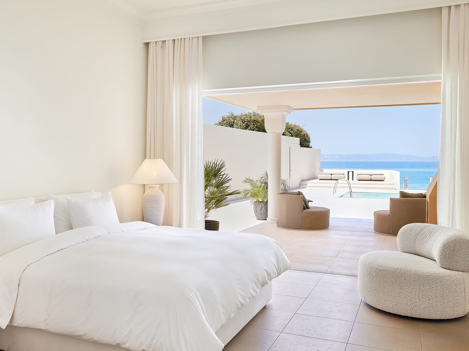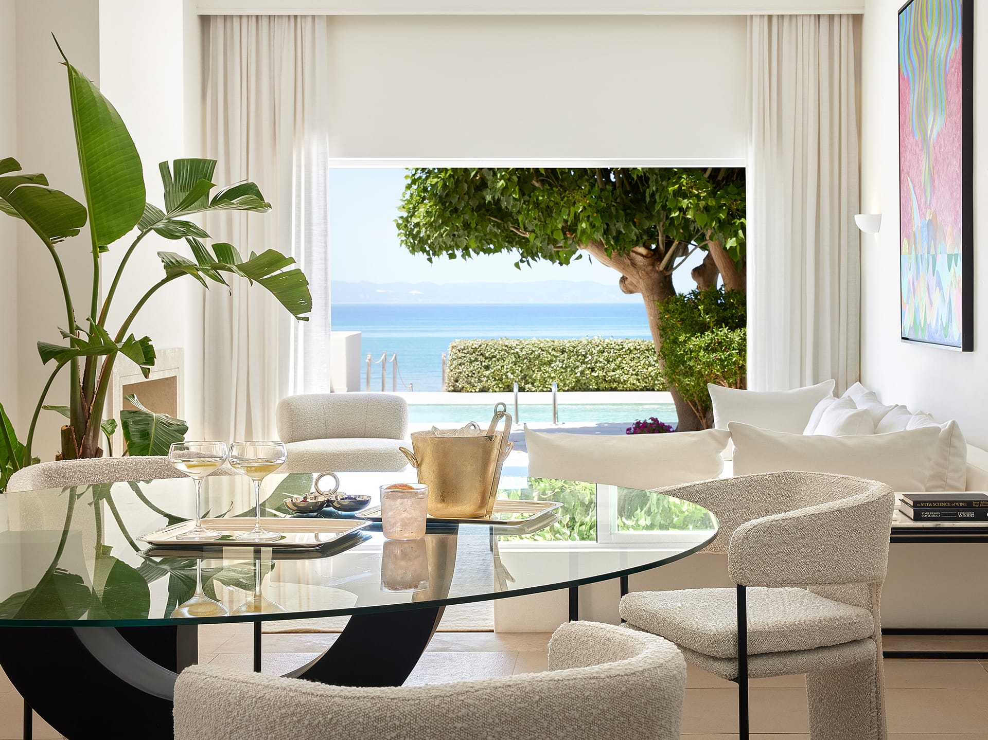 Located in the most exclusive section of Mandola Rosa Riviera, this Grand Sunset Residence offers the most extravagant beachfront setting in the resort with its own private beach cabana. The Residence is set out all in one level with amazing terraces, a grand marble pool and a more private master suite pool; all with infinity views to the sea. There are 5 bedrooms, all in crisp white cotton and linen decoration with luxurious bathrooms. The Grand Master suite is centered around a sparkling skylight with direct sea views, a cool veranda to relax or dine, a his & hers bathroom and a walk-in wardrobe room. The Salon opens to the covered and open air verandas with outdoor cozy cinema, ideal for family time together. Throughout the Residence the luxury of Greek marble, rich wood and works of Art creates a feeling of serenity, all in an amazing natural setting with the sounds of the sea.