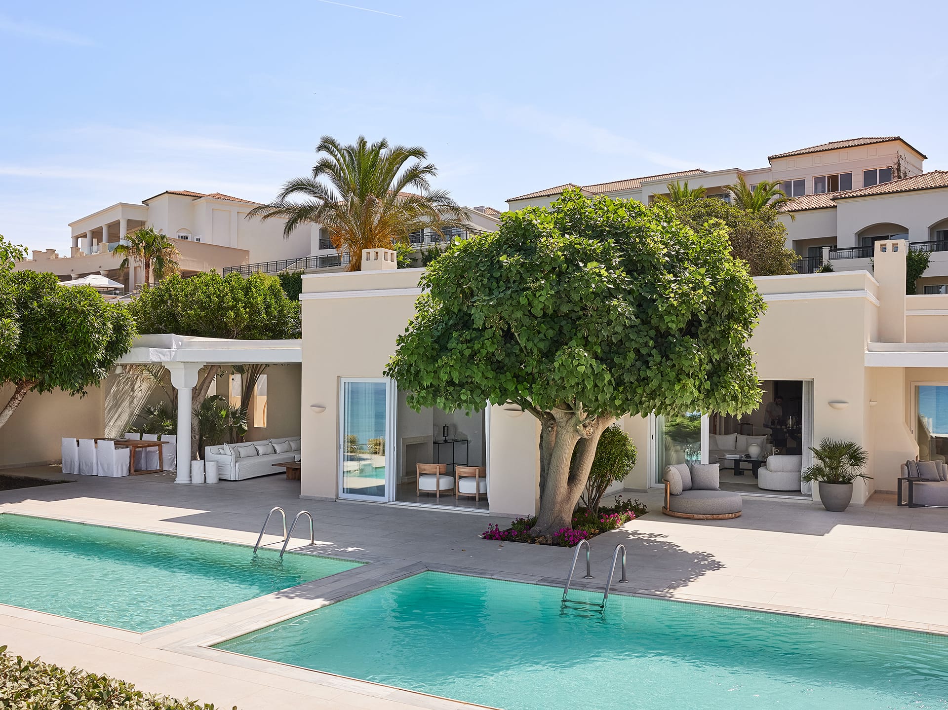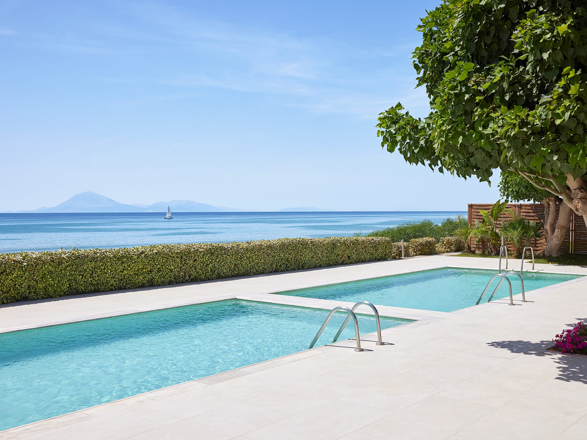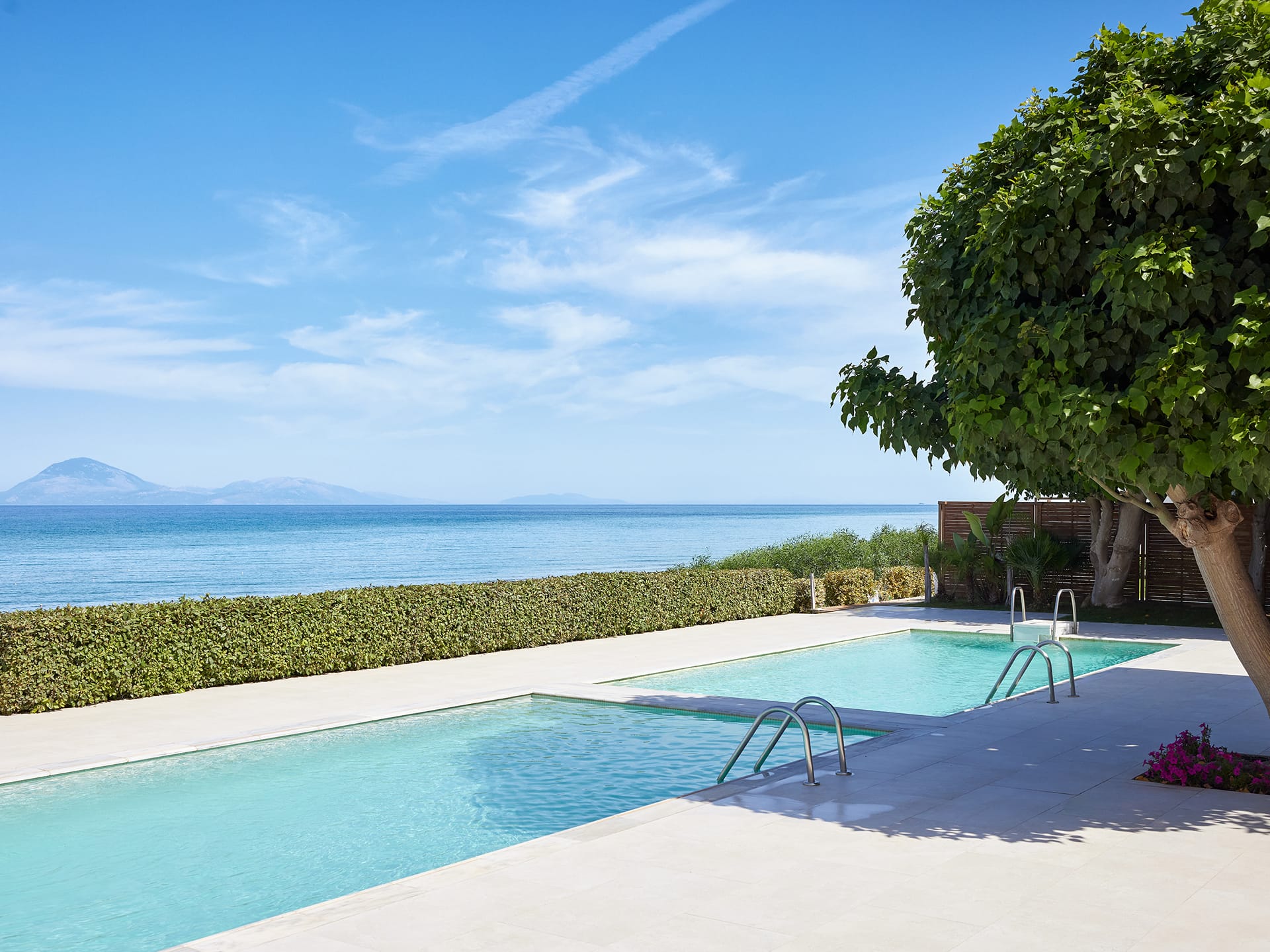 - LAYOUT: Beachfront one-level with 3 pools, private gardens’ terraces, indoor & outdoor salon and dining areas, open plan dining room, 5 bedrooms including a unique Grand Master Suite.